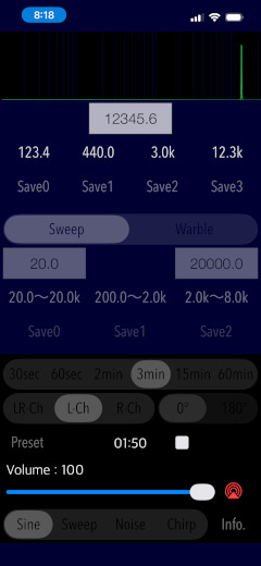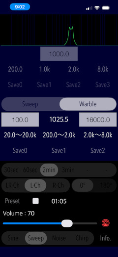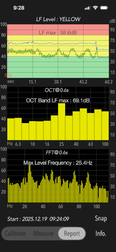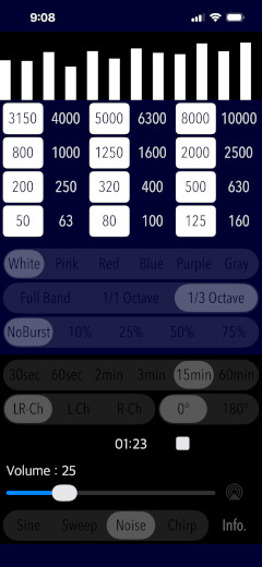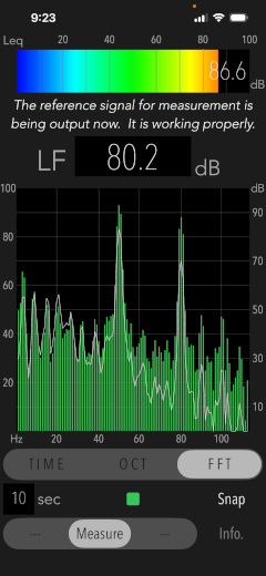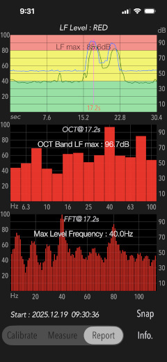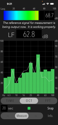 本アプリはスタートボタンを押すだけで、サウンドレベル(騒音レベル)をリアルタイムに測定できます。サウンドレベルはデシベル (dB) 単位で表示されます。一般的な騒音計に必須である周波数重み付け特性(A / C /Z)、時間重み付け特性(FAST / SLOW)を切り替えることができ、適切なサウンドレベル計測が可能です。